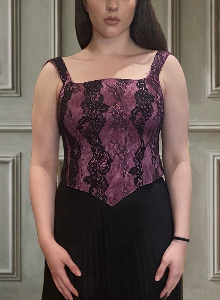 Introducing the ultimate shaping corset, perfect for achieving an hourglass figure and enhancing your natural curves. This corset features built-in bra padding for added support and comfort, as well as a smooth satin lining under delicate lace for a luxurious feel. The pointed bottom hem flatters the body and adds a touch of edginess to this classic silhouette. With thick straps and a back lacing design that allows for flexibility in sizing, this corset is practical as well as stylish. It is available in a range of color variations, so you can choose the one that best suits your personal style. Whether worn as a standalone piece or paired with other garments, this corset is sure to make a statement.