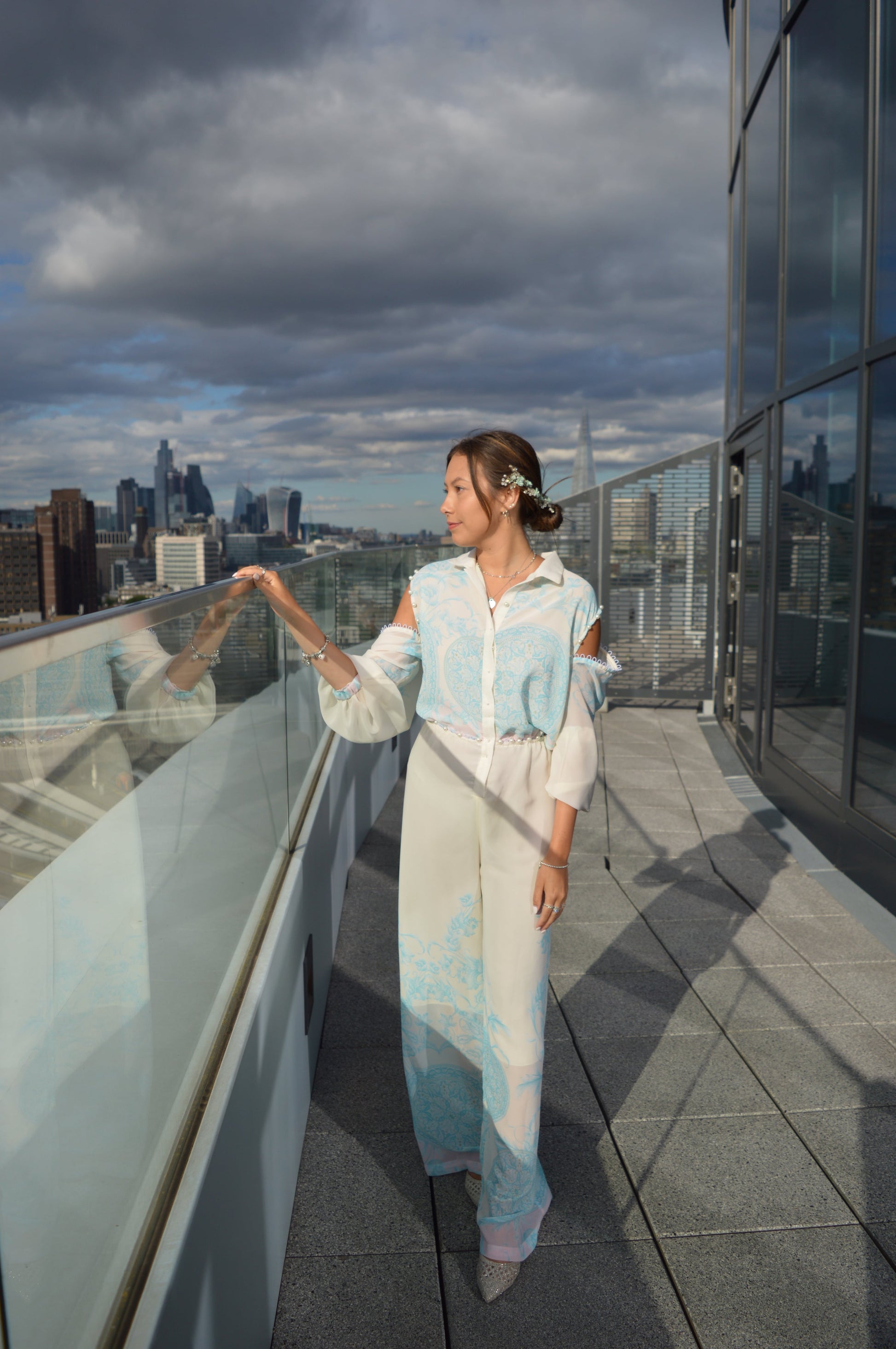 The Judy jumpsuit is one of our most versatile pieces. It can be worn modestly with sleeves and with the waist slit closed, or more revealing, with a waist slit and with the removal of the sleeves completely or partially as in the pictures. The piece can even be worn as a separate top and trousers. The jumpsuit leaves much control to the wearer to play around with the design.